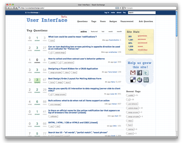 I’ve been visiting ui.stackexchange.com recently as a resource for ui/ux information. It’s a network within Stackexchange, a community powered Q&A hub that allows members to ask, answer, and rate. Here’s what I grabbed from their wiki: